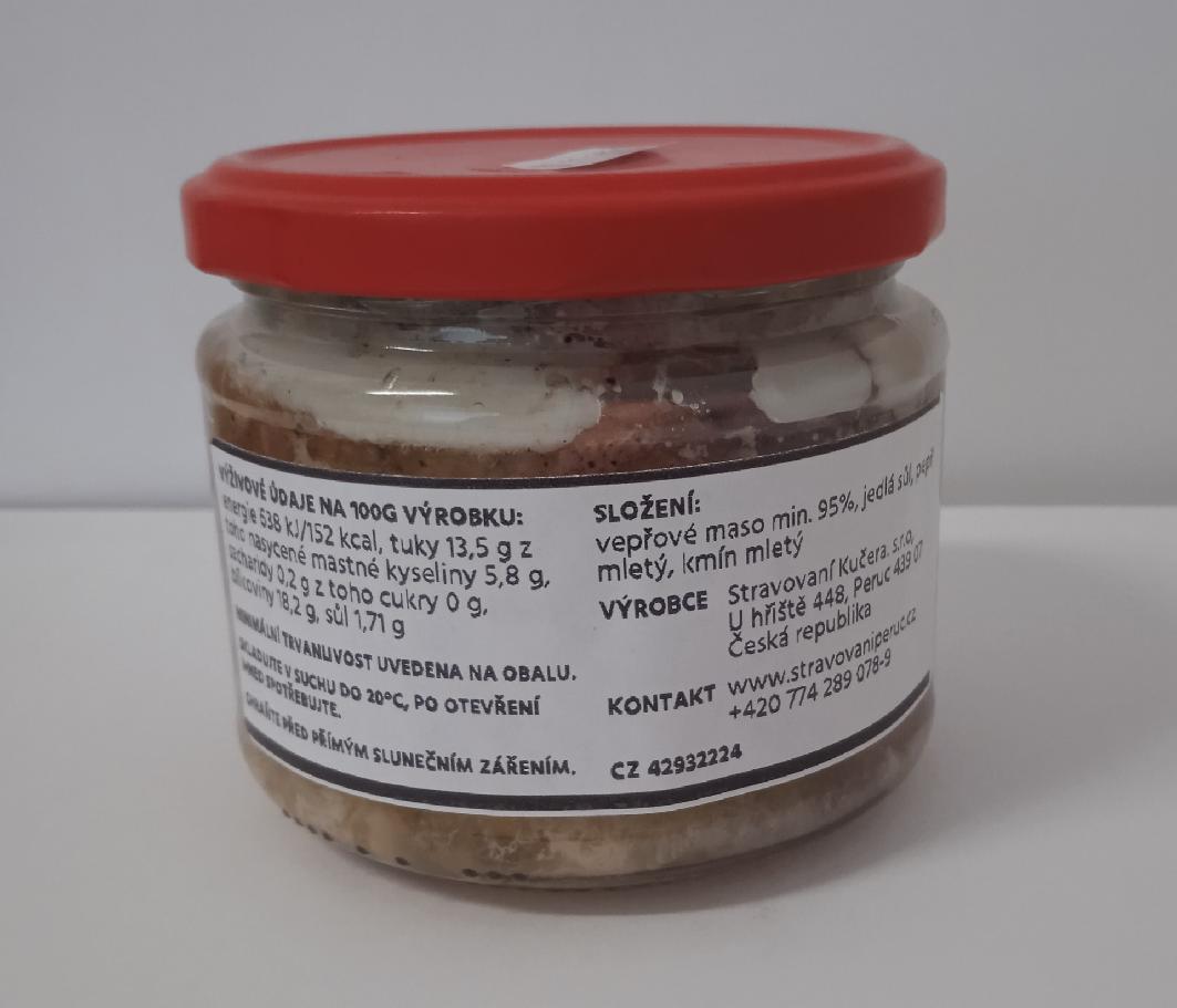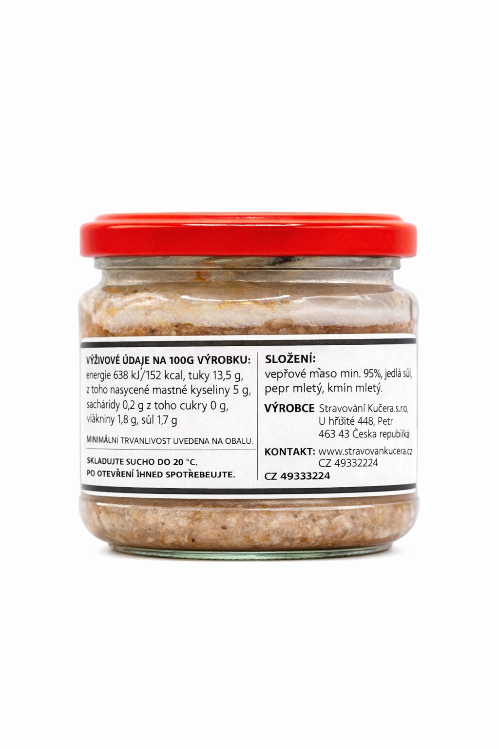 Složení – vepřové maso min. 95%, kmín mletý, jedlá sůl, pepř mletý